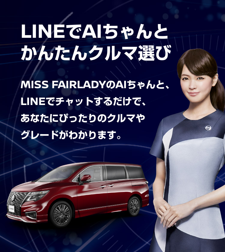 LINEアプリ内のQRコードリーダーから読み取ると、エルグランドのグレード選びが始まります。