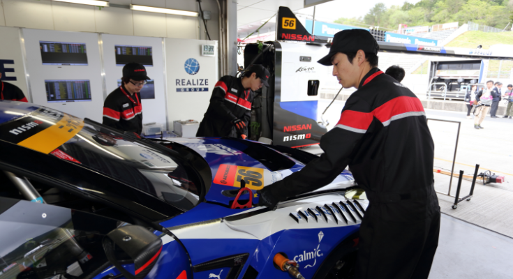 56号車は新しいチームでありながらも、KONDO Racingのプロメカニックと日産販売会社のテクニカルスタッフ(以下、TS)、そして日産自動車大学校の学生のコンビネーションが非常に良かった。レースウィークの月曜からスタートする整備活動は円滑に進み、「全員がチーム」の認識を全員で共有しながらサーキットに向った。そして予選。56号車はサッシャ・フェネストラズ選手、平峰一貴選手の好走により参戦2レース目にして初のポールポジションを獲得した。2戦目でのポールポジション獲得はチームに自信をもたらし、TS、日産自動車大学校学生のモチベーションを高めた。決勝レースでは他車との激しい上位争いを繰り広げたが、チームが想定していたよりも涼しい天候だったためタイヤパフォーマンスを十分発揮できず、4位となった。