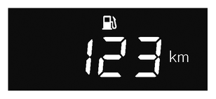 現在の燃料残量と平均燃費から走行可能な距離を表示します。