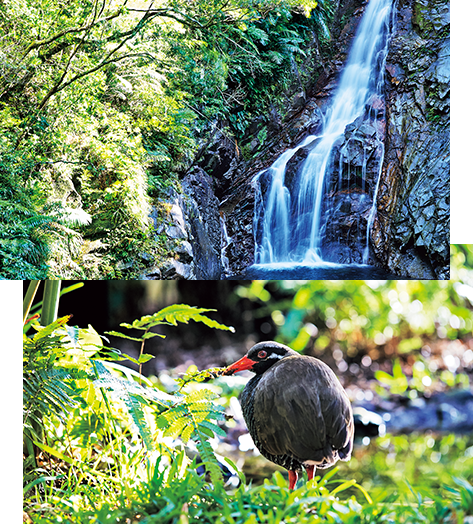 沖縄本島の北部、やんばるの森を歩いてみたい。そんな計画を立て、国頭村に宿を取った。夕方から降りはじめた雨は朝にやみ、ホテル周辺に靄(もや)がかかる。「こんな朝はヤンバルクイナが現れるかも」。宿の主人の言葉で予期せぬ期待が湧き上がる。 空港で借りたクルマをスタートさせる。目的地は沖縄本島でもっとも大きい滝、比地大滝。そこまで約1.5キロのトレッキングコースがあるらしい。宿からトレッキングコース入口までの道はアップダウンが多くクネクネと曲がるが、アクセルペダルだけで加減速を操作しながら快適に進む。上り道での加速も気持ちいい。刹那、前方の道路脇に小さな黒い物体が動いているのが見えた。まさか。減速すると、真っ赤なくちばしと足が目に入った。ヤンバルクイナだ! やんばるの固有種であり、天然記念物でもある。そう気づいた時には素早く走って脇の茂みへと消えていった。ほんの一瞬ではあるが、野生のヤンバルクイナを見られたことに興奮した。