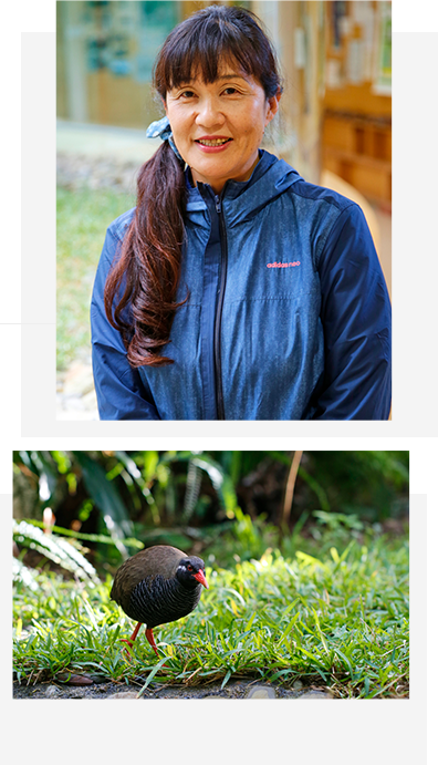 野生ではなかなか見ることのできないヤンバルクイナを、「いつでも見られる」状態で展示している「安田(あだ)くいなふれあい公園」内にある『ヤンバルクイナ生態展示学習施設 クイナの森』。そこの解説員の宮里さんは、展示されているメスのキョンキョン(6歳)について語らせたら止まりません。「飛べないクイナで世界の一番北に棲んでいるのがヤンバルクイナです。キョンキョンは、70羽以上の中から選ばれた“スーパーモデル”なんですよ」。アクリルを隔てて至近距離でヤンバルクイナを見られるだけにリピーターも多く、東京から10回以上通って来る方もいるとのこと。「タイミングが合えば、可愛い水浴び姿が見られます」と、楽しげに教えてくれました。