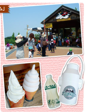 牧場内で見つけてしまった思わぬ行列。その先にあったのは、 「も〜も〜らんど」名物ソフトクリーム!油山オリジナルの ソフトクリーム(300円)は、ミルクの香り濃厚なのに、口 当たりはさっぱり。とってもおいしい!ちなみに、売店には 油山牧場生まれの牛乳(900ml420円)も販売中。甘くてコクの ある味わいは、そのままでももちろん、コーンフレーク などにも相性抜群です!