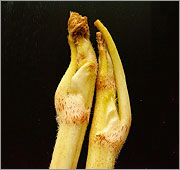 芽先はナイフで丁寧に採ること。脇芽、2番芽、芽の長さが10センチ以上のものはx