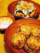 まだまだ「カクウチ」がオジサマたちだけの楽しみだった5年前、照明も抑え目の和モダンインテリアにたこ焼きという斬新スタイルで登場した「赤たん」は、今でも1日3回転する時もあるという人気店。 |