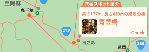 なかった」ことです。高千穂へは、高速道路よりも国道を運転する時間の方が長かったのですが、行きも帰りもほとんどストレスもなくとても楽でした。現地では、青雲橋を下から見上げ