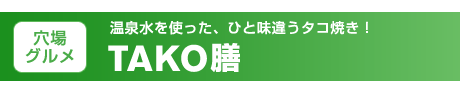 TAKO膳では、作りおきは一切なく、すべて注文を受けてからじっくり時間をかけて焼き上げているそうです。 そして、最後にゴマ油でこんがり仕上げて出来上がり。カリッ&とろ〜りまろやかな風味の絶妙なバランスは、クセになりそう。 ただし1個1個が大きくてアツアツなので、ちゃんとふうふうしてからお口へどうぞ。 トッピングは、からしマヨネーズや梅マヨネーズなどがあり、お好みで選べます。私は、ちょっとわがままに半分ずつ両方のお味を 楽しませていただきました。意外とオツだったのが、明石焼風におダシにつけて食べるスタイル。おダシには大根おろしも入っているなど、とっても ヘルシーでした。 TAKO膳のタコ焼きは、焼き上がりに20分くらいかかるので、先に電話で予約してからお店に行くのがおすすめ。 なお、お子様向けに「チビタコ(4個180円)」もあり、子供たちにも人気のようです。 |