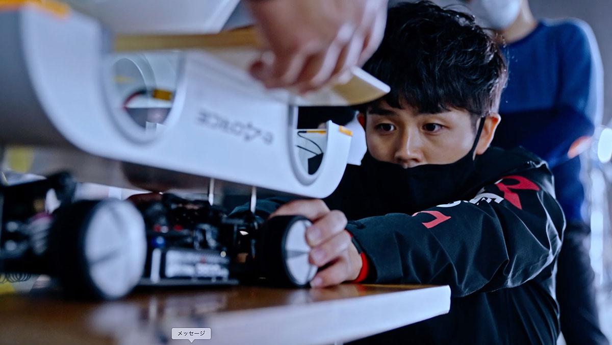 「e-4ORCE RAMEN Counter」は、日産ARIYAに搭載される新技術「e-4ORCE」に着想を得て開発したラーメンカウンターです。e-4ORCEは、ツインモーター四輪制御技術により、パワフルなドライビングパフォーマンスと、安定したフラットな走りを実現し、減速時の前後の揺れを軽減します。このラーメンカウンターでも、パワフルな走りとフラットな減速で、ラーメンをこぼすことなく、お客さまのお席までお届けします。