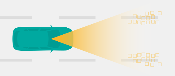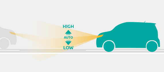 前方検知用のカメラで、先行車や対向車のライト、道路周辺の明るさを検知し、ハイビームとロービームを自動で切り替え*4。ハイビームでの走行頻度を高めて、歩行者の早期発見など安全運転をサポートします。