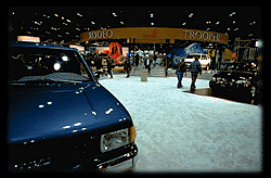 会場をぐるっと見回してみると、いつも目にする日本のモーターショーとは違って静かな事が印象的。隣あったブースから全く違うアナウンスとBGMが激突して、音と情報の洪水なんてこともないし、お目当ての車にたどり着くのに、人の流れに刃向かって行かなければならない事だってない。そう考えると、このシカゴショーの見やすさは本当に印象的。ま、今日がウイークデーということもあるとは思うし、会場の中心にあるレストランはショーがオープンしている間は営業しているけど、味の方は日本とどっこい。
