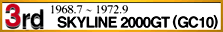 3代目スカイラインは、ファミリーユースとスポーツ性の両立させるという開発コンセプトを見事に昇華し、より快適なグランツーリスモ(GTカー)への成長を見せた。また、1500、1800、2000、ハードトップという多彩なバリエーションと「愛のスカイライン」という宣伝キャンペーンにより、月間販売台数を一挙に1万台ベースに飛躍したのである。
