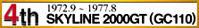 通称「ケンメリ」と呼ばれたこの4代目スカイラインは、先代からのスポーティ・ファミリーカーという性格も反映され、豊富なバリエーションとロマンチックなキャンペーン展開で、ヤングから年配まで幅広いファンを魅了した。しかしソフトなイメージの一方で、エアロダイナミックなボディとレースからフィードバックされた技術のイメージを損なわずに「スカG」であり続けた。