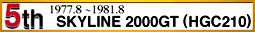 5代目スカイラインは、スカイラインの伝統と新しさを巧みに調和させてお目見えした。洗練されたウェッジシェイプとサーキット・メーターが新鮮なこの2000GTは、その伝統に恥じないように130馬力、直列6気筒L20E型エンジンを搭載。一段と成熟度を増したこのスカイラインは、「日本生まれの日本の名車」であることを主張して、「スカイライン・ジャパン」の名が与えられた。