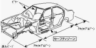 車体を二つのZONE、すなわちクラッシャブルゾーンとセーフティゾーンに分けて、それぞれの機能を高めて造り上げること。