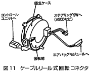 ステアリングコラムからステアリング内に組み込まれたエアバッグに固定部分から回転部分へ電気信号を伝えるための特殊なコネクタで、衝突時の衝撃などにより瞬断しないことが要求される。スリップリング式とケーブルリール式がある。
