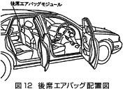 日産車を例に構成を説明する(図-4)。車両のフロアトンネル付近に2個のセンサ、すなわち、トンネルセンサとセーフティングセンサが設置されている。これら両方のセンサが同時に作動したときのみ衝突と判断するようになっているので、センサが作動したのと同じモードになる回路上の短絡が2箇所以上で同時に発生しないと、システムの誤作動が発生しない。そして、それらの信号は隣接するコントロールユニットで処理され、各エアバッグに点火信号を送る。また、コントロールユニットはシステム全体の電気系統の異常監視や電源故障に対する補助電源機能も有する。各エアバッグモジュールはコントロールユニットからの作動信号のみにより作動し、エアバッグをふくらませるようになっている。