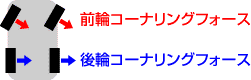 クルマが進行方向に向かって走っている時にハンドルを切るとコーナリング・フォースが出ます。