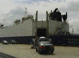 今度はクルマを待っているお客様のもとに届けるために、 完成したクルマを車両運搬船にのせるんだ。