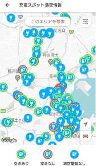お近くの最新の充電スポットと空き状況を、