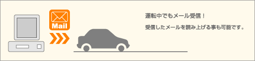 車の中でのメール利用については、普段お使いのISP(インターネット・サービス・プロバイダ)等のメールアカウントに届いたメールを受信する機能になります。