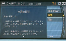 オフィスに向かう途中や、遊びに行くときにも、メールでの連絡は気になるもの。カーウイングスなら車載機でメールの受信ができるので安心です。