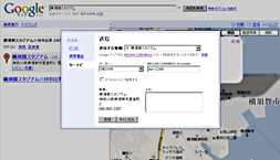 Googleマップを利用し、お店やサービス、レストランやショップなどの施設を検索します。 検索した施設の吹き出しの中、もしくは地図上部の「送信」をクリックします。