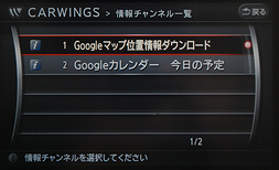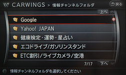 CARWINGSスイッチを押して、情報チャンネルの「Google」フォルダを選択します。