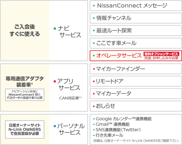 ※専用通信アダプタ装着車*、CAN対応車** の車種別適用表は