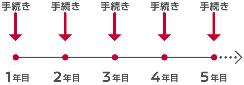 保険の手続きは契約時のみで、毎年の更新手続きは不要です。