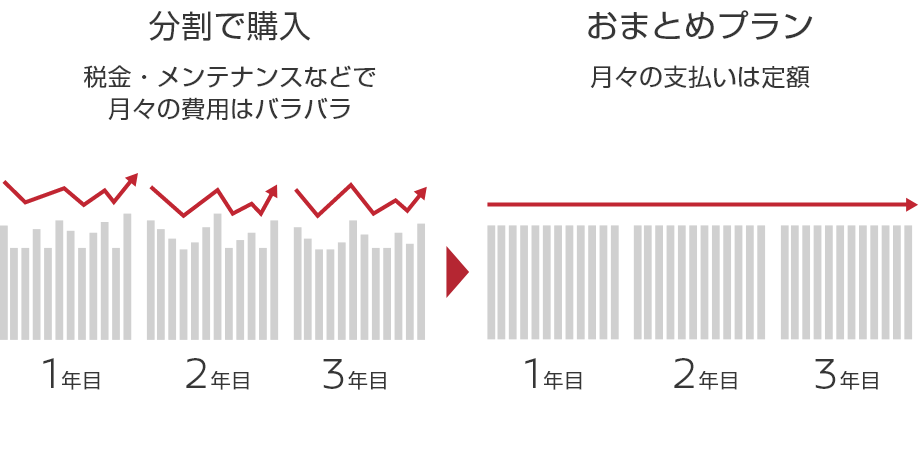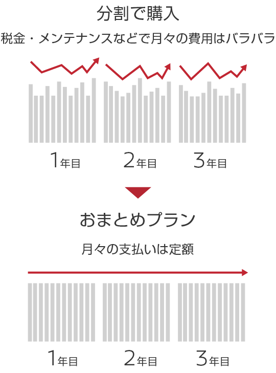 税金やメンテナンスがコミコミなので、急な出費なく、お支払いはずっと一定です。