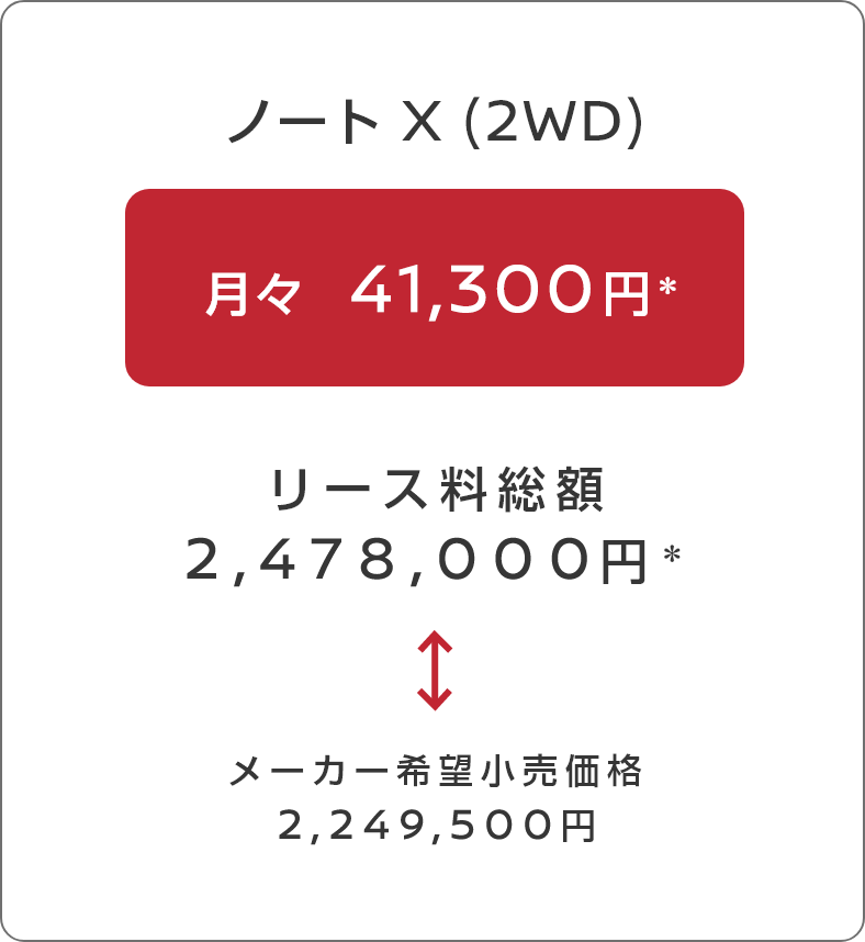 できます。お客さまのご希望により、頭金(前払いリース料)やボーナス併用払いの設定が可能です。その場合、月々のリース料が変わりますので、詳しくはお近くの日産の販売店にご相談ください。