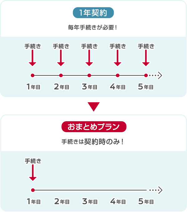 おまとめプランに自動車保険を組み込むメリット(1)「更新手続きが不要」