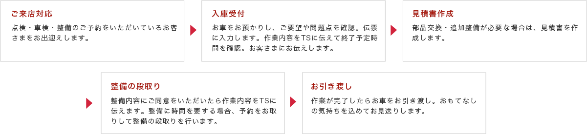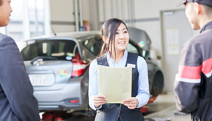 お客さまと接する中で、新車のニーズを感じた場合や整備に関して相談したいことがあった場合は、都度CAやTSとコミュニケーションを図り、総合的なサポートをしていきます。