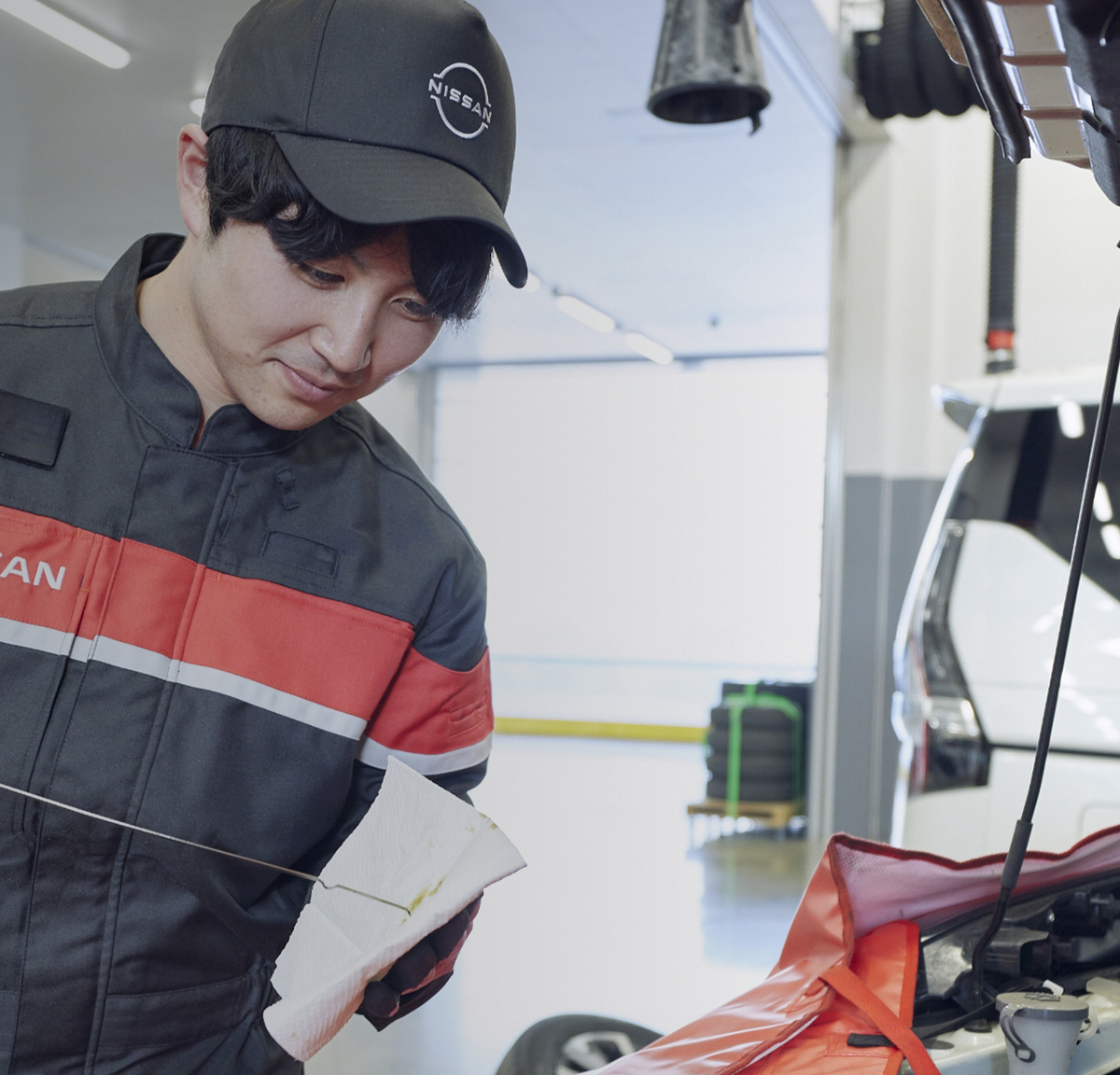 日産販売店では店頭にて整備の受付を行うTAと、実際に整備を行うTSという2つの仕事があります。
