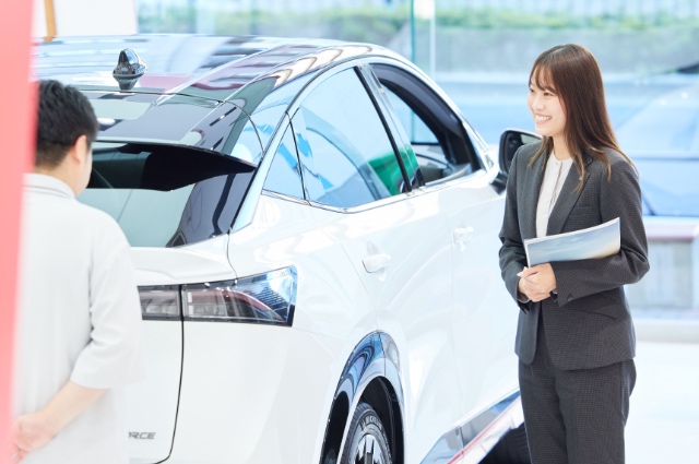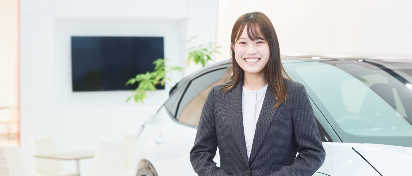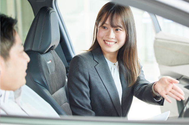 勉強で一定の知識は身につきましたが、もっと接客が上手になるには一人では限界がありました。そこで先輩に「接客の特訓に付き合ってください」と意を決してお願いしたところ、快く引き受けてくださり、週に一度の接客ロールプレイングでクルマの魅力を100%伝える方法を教えてもらえることになりました。クルマの知識や提案方法の理解が深まるにつれて、気持ちに余裕が生まれるのを実感。お客さまの前でうまく話せることも増えていきました。根気強い提案で新車を初受注した際は、特訓してくれた先輩だけでなく店舗のみんなが一緒に喜んでくれました。