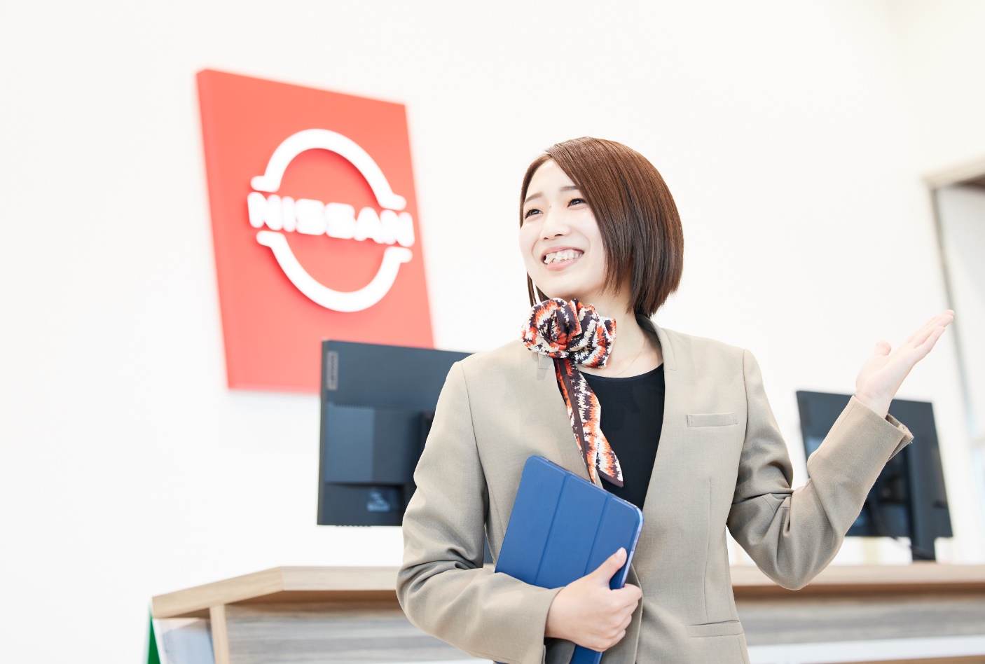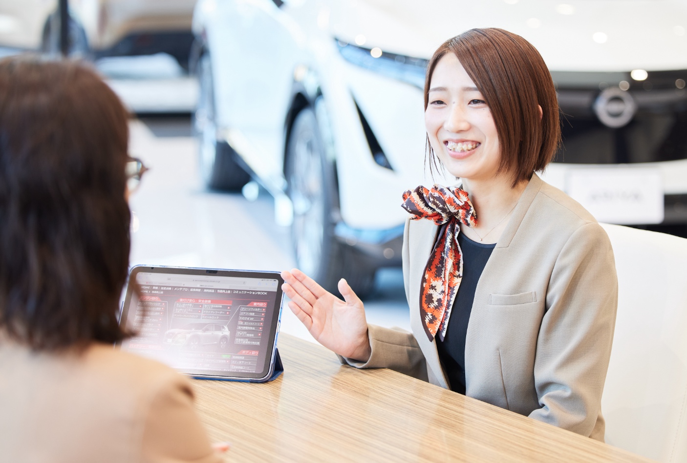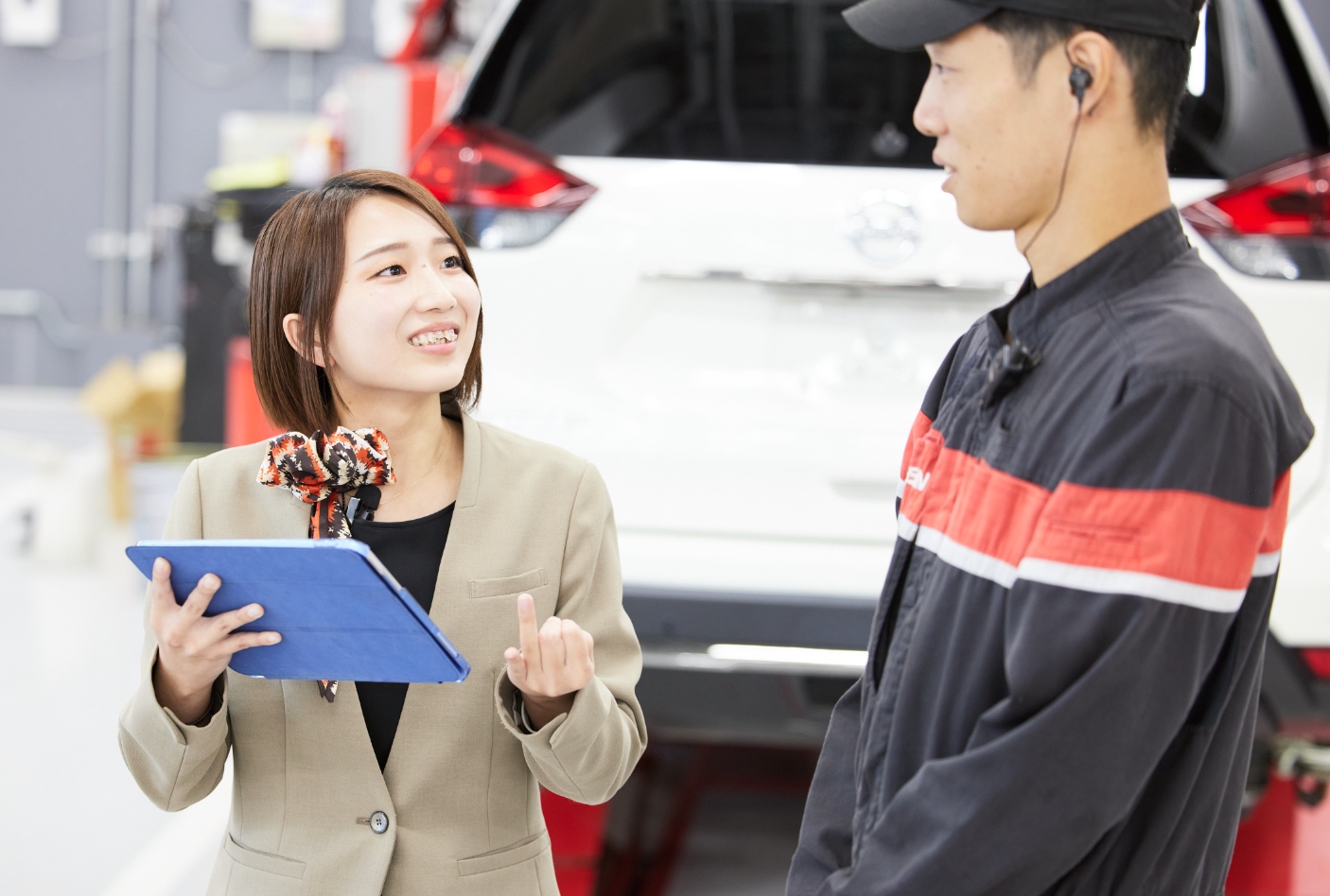 TAの仕事で面白いのは「チームプレーの要」となれること。TAがお客さまから要件を伺い、適切なスタッフに引き継ぐので、TAはコミュニケーションの中心的存在です。例えばクルマに不調があった際、故障の状況などを正確にテクニカルスタッフ(TS)へ伝えれば、見積もりや修理対応のスピードも上がります。仕事のしやすさだけでなく、お客さまの満足度にもつながる大切なポジションです。ときには、お客さまがこぼした本音を拾ってカーライフアドバイザー(CA)に連携し、提案や売上の役に立つ場面もあります。スタッフやお客さまからの感謝が日々のやりがいです。