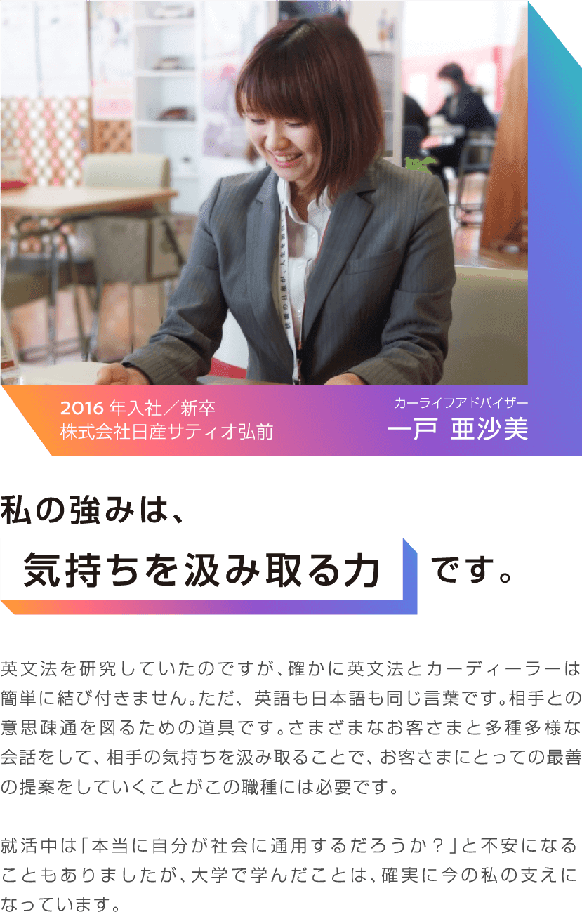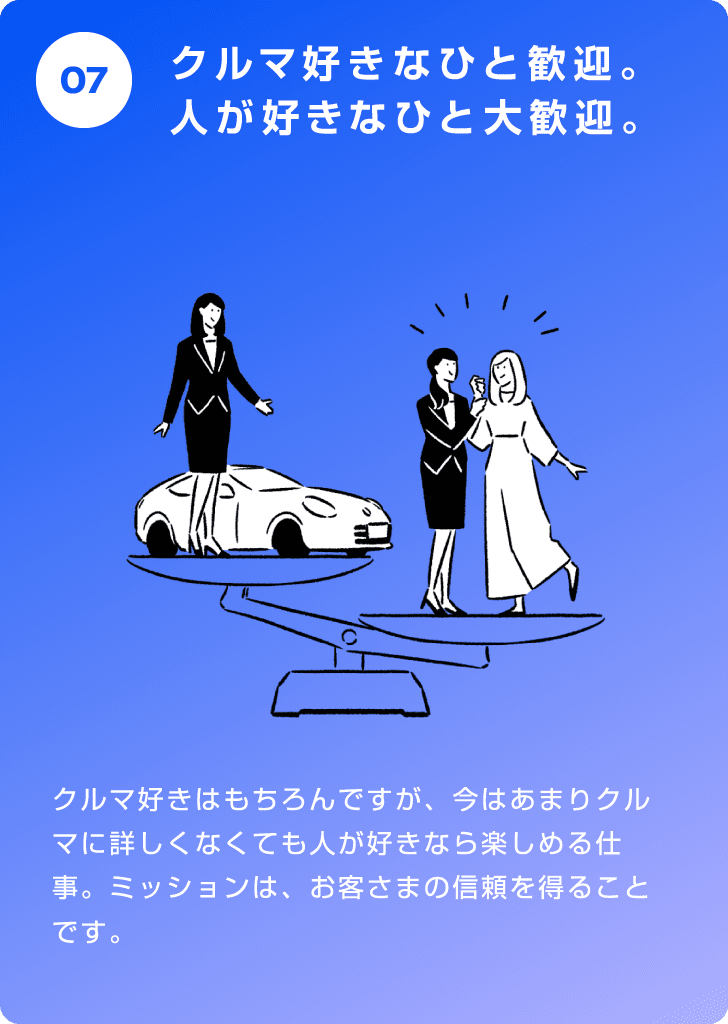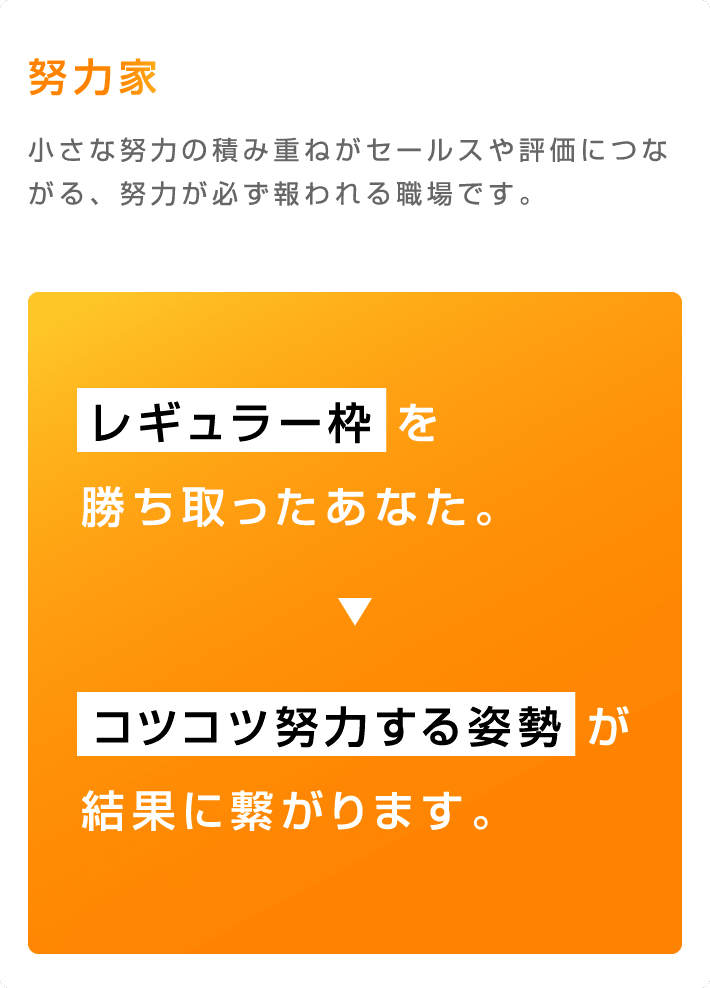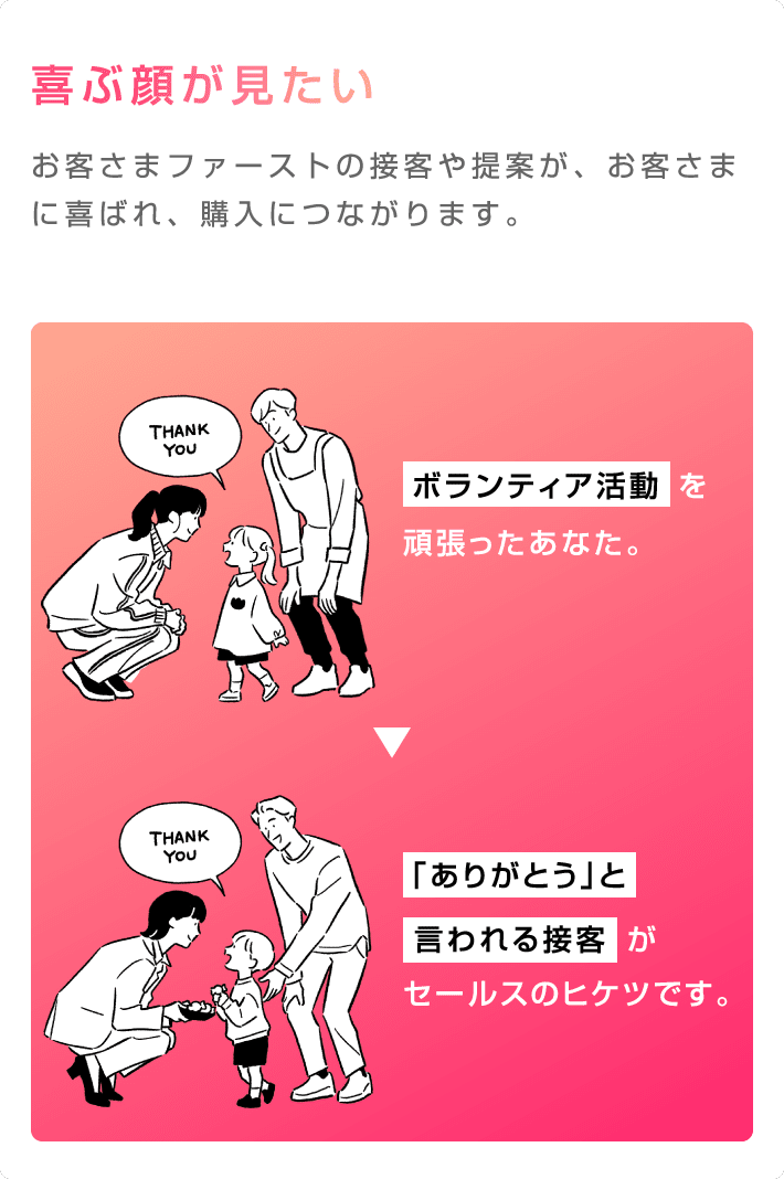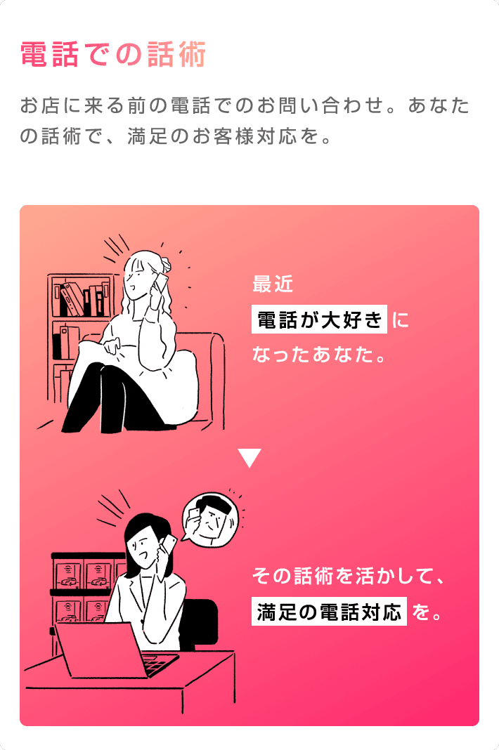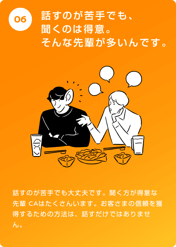 友達に相談されることが多い。そんなあなたの共感力で、お客さまの悩みに寄り添える。