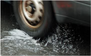 タイヤが4輪とも水の上に浮き上がってしまい、ハンドルもブレーキも効かなくなる現象です。走行速度や雨の量によって発生する条件が違いますが、深い水たまりなどでは時速50キロでも起こることがあります。