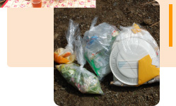 小さなビニール袋に、可燃、不燃などに仕分けした上で、大きな袋にまとめて持ち帰ると家で捨てる際にもとっても簡単。