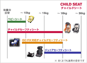 チャイルドシートは産まれたばかりの乳児用から小学生向けまでいろいろ。