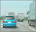 走行する際、大型トラックやバスの後ろにはなるべくつかないように。道の前方がどうなっているのか判断がしづらくなります。