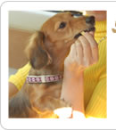 リラックスした雰囲気の中、愛犬にオヤツをあげます。