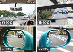 スムーズに車線を変えるには、移りたい車線のクルマの走行状況はもちろん、自分が走行している車線の状況把握が重要。車線を変えたいときだけ確認するのではなく、普段から前後左右をバランス良く確認しながら走る習慣を。確認する場合は、前後がそれぞれ40%づつ、左右は10%づつ程度になる感覚で。