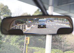 ルームミラーは、真ん中をクルマの中央に合わせると後続車の位置を確認しやすくなります。