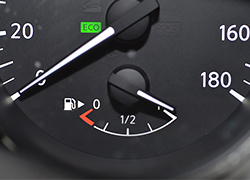 「燃料メーター」はスピードメーター周辺にあります。現在タンクにどれぐらいガソリンが入っているかを表示しています。残り少なくなると警告灯が点灯する機能のある車種もあります。