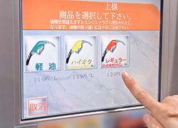 事前に確認した油種を給油機のパネルで選びます。