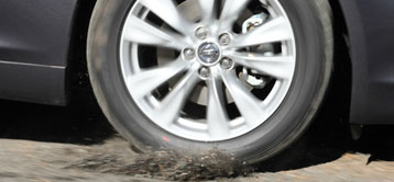 アクセルを強く踏むとスリップが発生してしまいます。まず足をペダルに乗せるようにして、そこからじんわりと踏み、スピードを後から乗せていくようにするのがコツ。
