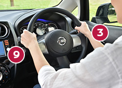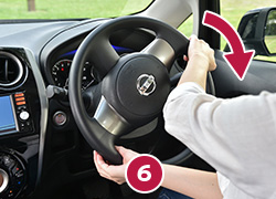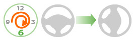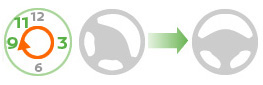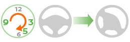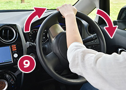 【練習】「正しいハンドルの切り方」(右に切る場合) ハンドルは1回転半まで回ることを覚えましょう。