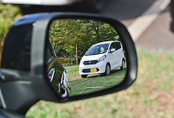 ミラーを下向きに調整しておくと駐車スペースがわかりやすくなります。車種によってはバックにシフトを入れると自動で下向きになるミラーもあります。