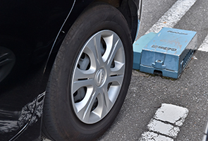 前方に設置された鏡を見ながらタイヤの進む場所をうまく合わせ、パレットにクルマを乗せましょう。