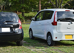 横のクルマと平行に停め、その際ミラー位置を横のクルマと合わせるようにすると縦列駐車するのに充分な距離が保てます。